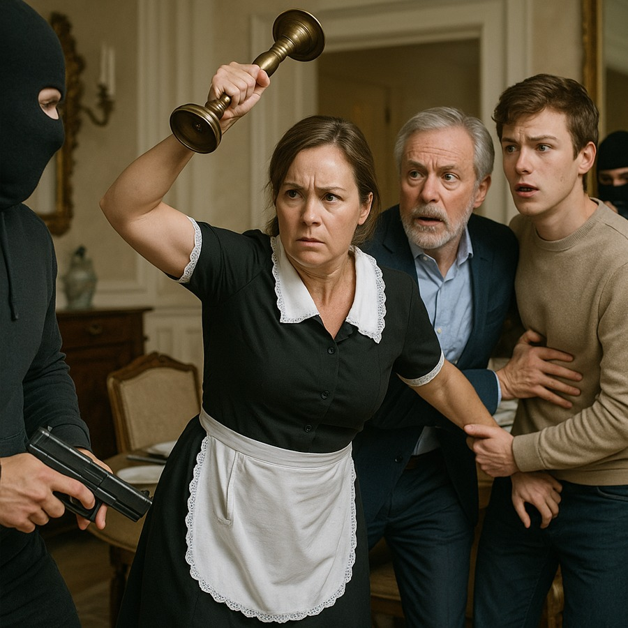 “Empleada doméstica enfrenta a ladrones y salva a familia millonaria.”