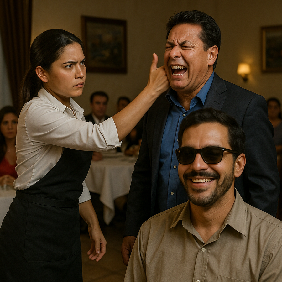 La Escandalosa Noche en la que una Mesera Enfadada Abofeteó a un Multimillonario por Burlarse Cruelmente de un Hombre Ciego —Pero lo que Nadie Esperaba Era la Sorprendente Sonrisa del Afectado, un Gesto que Detuvo el Restaurante Entero, Reveló una Verdad Impactante y Desató un Giro Tan Increíble que Cambió por Completo la Percepción de Todos los Testigos, Desde los Comensales hasta el Personal