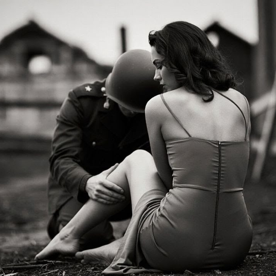 un grupo de soldados endurecidos por el clima ayudando a un grupo de mujeres asustadas a comprender que no serían enviadas a ningún lugar hostil.