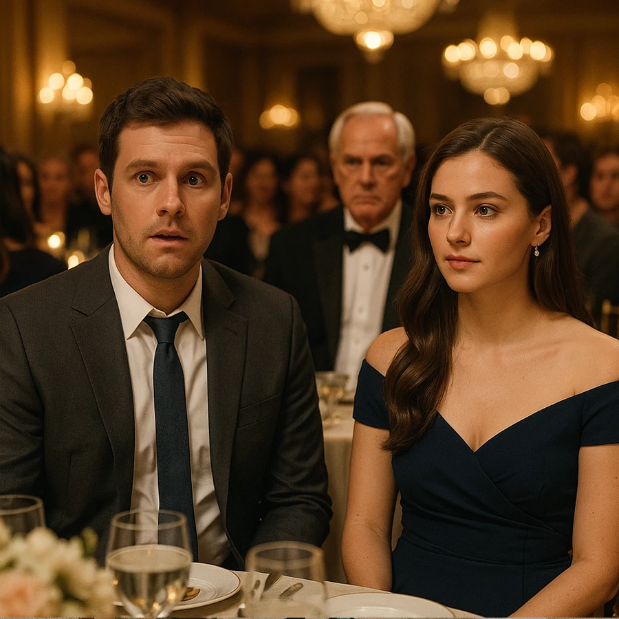 La cena fue un espectáculo de lujo. Mesas adornadas con candelabros, música de piano y un ejército de camareros sirviendo vinos exclusivos. El padre soltero, vestido con un traje alquilado, se sentía fuera de lugar. Pero la joven heredera lo tomó del brazo y lo presentó como “su esposo”.