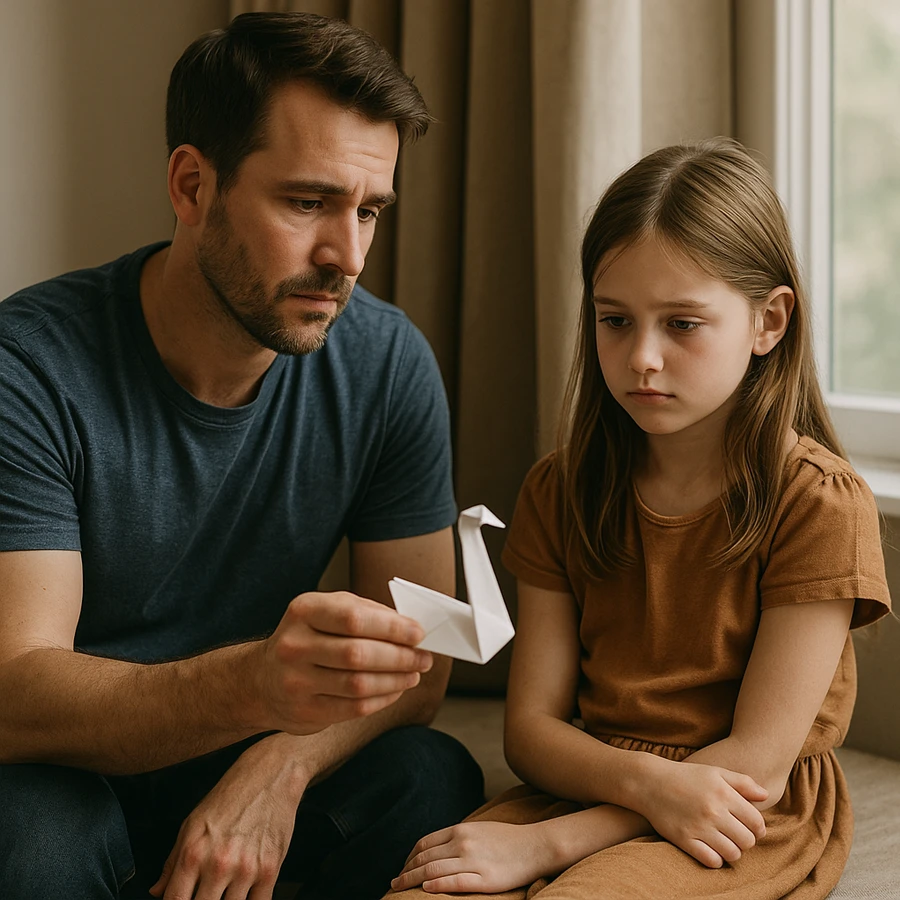 “El hombre que dobló el silencio: cómo un padre viudo rompió el muro de una niña millonaria con un cisne de papel.”