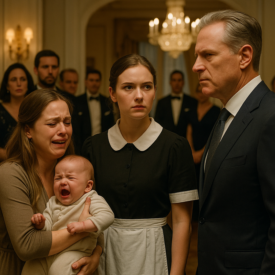 La oportunidad llegó durante una cena de gala. Políticos, empresarios y figuras de la alta sociedad se reunían en los salones brillantes de la mansión. La bebé estaba en una habitación contigua, vigilada por Margaret. Elena, con el uniforme impecable, sirviendo copas de champán, decidió actuar. Aprovechó un descuido y colocó el frasco adulterado en medio de la mesa principal, junto a las copas de vino.