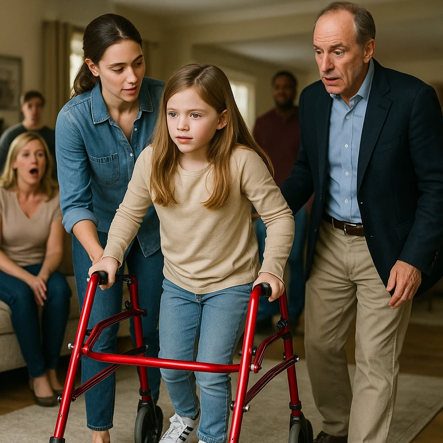 Y entonces, ocurrió. Primero un paso torpe, luego otro más firme. La niña, que llevaba años prisionera de una silla de ruedas, avanzó entre lágrimas y risas hacia los brazos de su padre. Richard, el millonario acostumbrado a controlar todo con dinero, se desplomó llorando. Era la primera vez que el hombre más poderoso de la sala se sentía impotente… y agradecido.