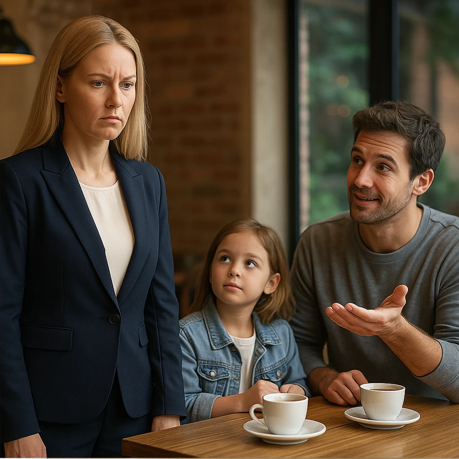 De pronto, el café entero parecía haberse detenido. Algunos clientes observaron la escena con curiosidad, sin entender por qué aquella mujer elegante, que antes parecía inaccesible, reía con naturalidad junto a un hombre y una niña que apenas conocía.