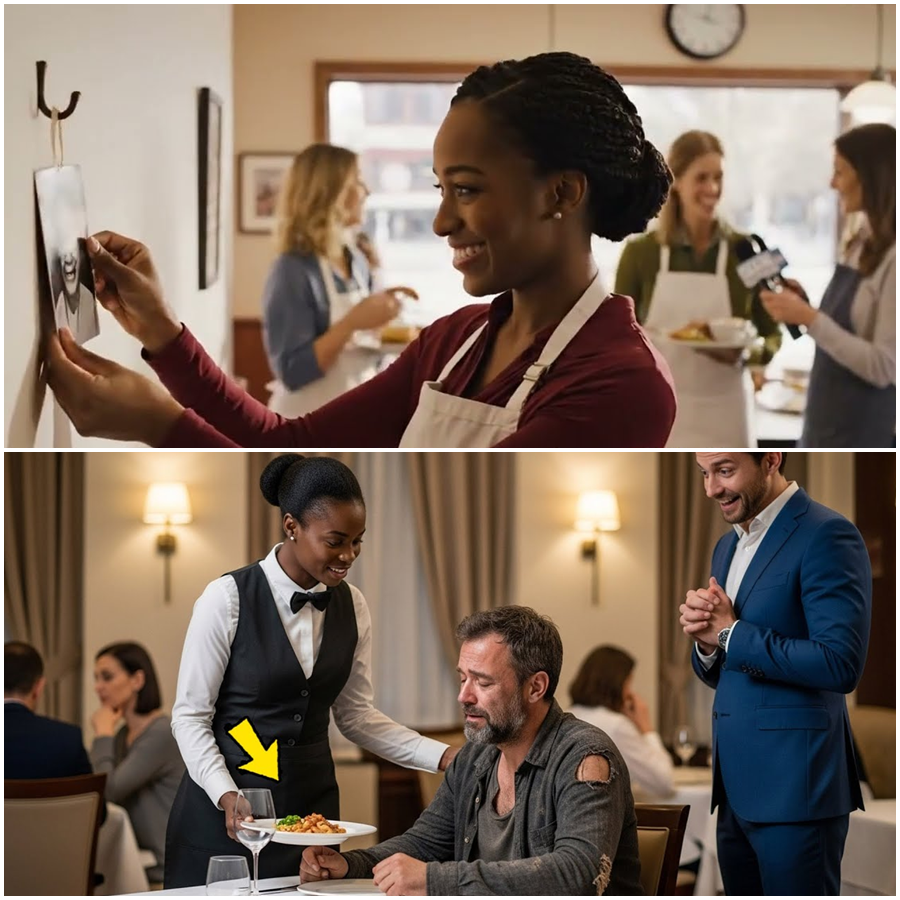 “La joven mesera de piel oscura que ofreció comida a un hombre sin hogar sin imaginar que, desde la esquina del restaurante, un billonario observaba cada gesto: lo que ocurrió después reveló un secreto inesperado, un acto de humanidad conmovedor y un giro tan sorprendente que dejó impactados a todos los presentes”