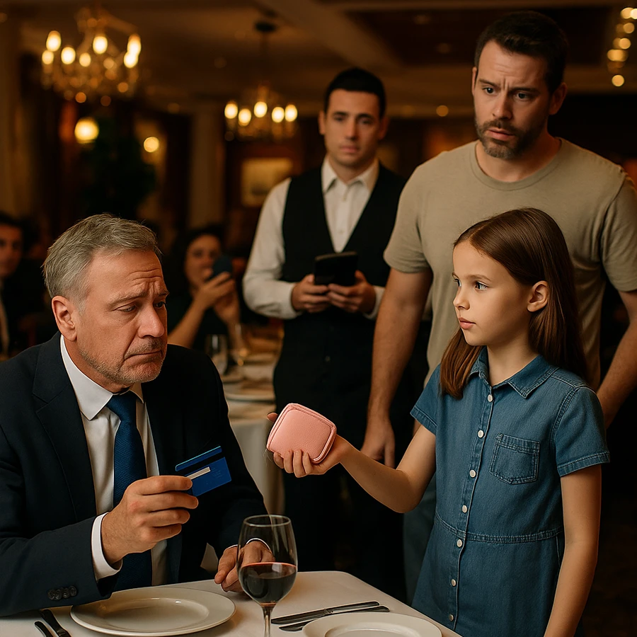 Esa noche en el restaurante quedó marcada como el momento en que un millonario poderoso fue salvado, no por un banco, ni por sus contactos, sino por la compasión de una niña con un monedero rosa.
