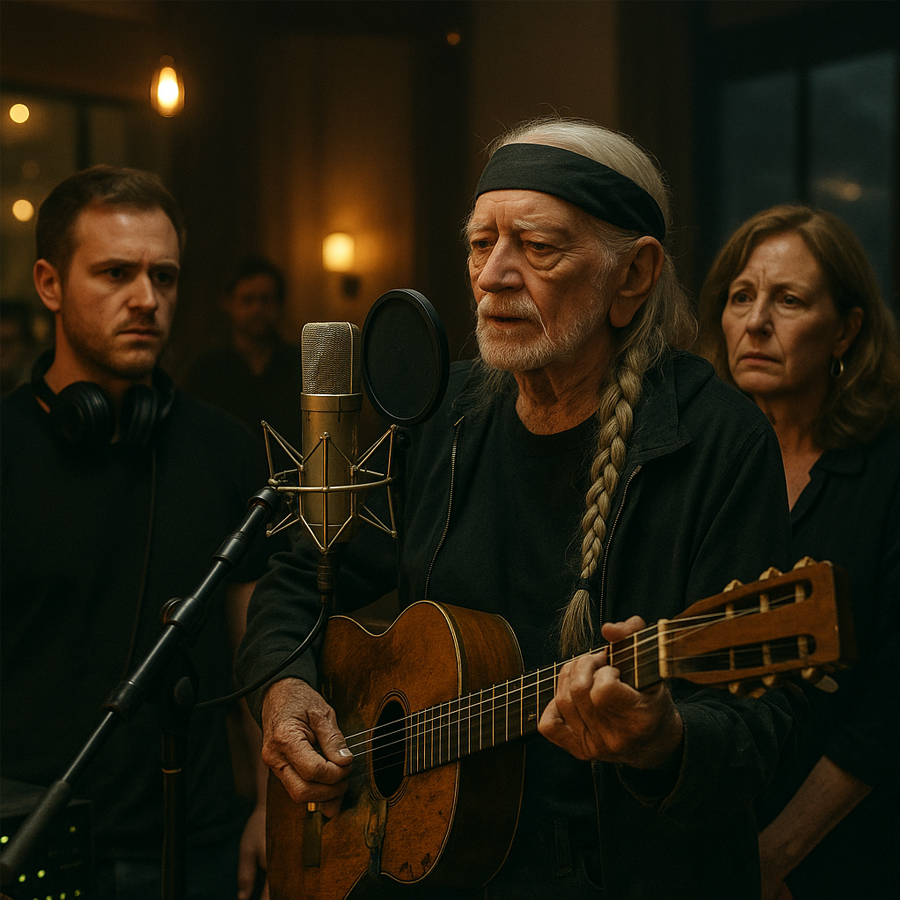 En una noche templada en Nashville, bajo luces tenues que apenas dejaban asomar las vetas doradas de los instrumentos en un estudio, una figura solitaria se quedó al pie de un micrófono. Willie Nelson, con su voz arrastrada por los años, entonó una canción inédita. Nadie más estaba allí: ni prensa, ni fanáticos, ni promotores. Solo él… y una emoción tan densa que pareció materializarse en el aire.