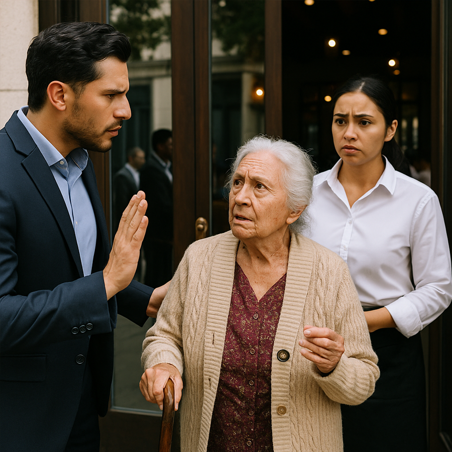 —“Disculpe, joven, solo quiero entrar a comer algo,” —dijo la anciana con voz suave.