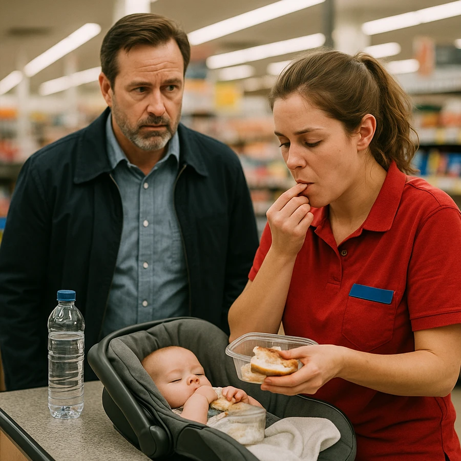 Fue en una de esas jornadas cuando notó algo extraño. Durante la hora del almuerzo, mientras todos los trabajadores se sentaban a comer, una joven cajera se apartó discretamente. Ella abrió una pequeña lonchera con apenas un trozo de pan y una botella de agua. Lo curioso fue que no comió nada. En cambio, cortó el pan en pedazos pequeños y los guardó en una bolsa de plástico. Luego, bebió un poco de agua y fingió que estaba satisfecha.