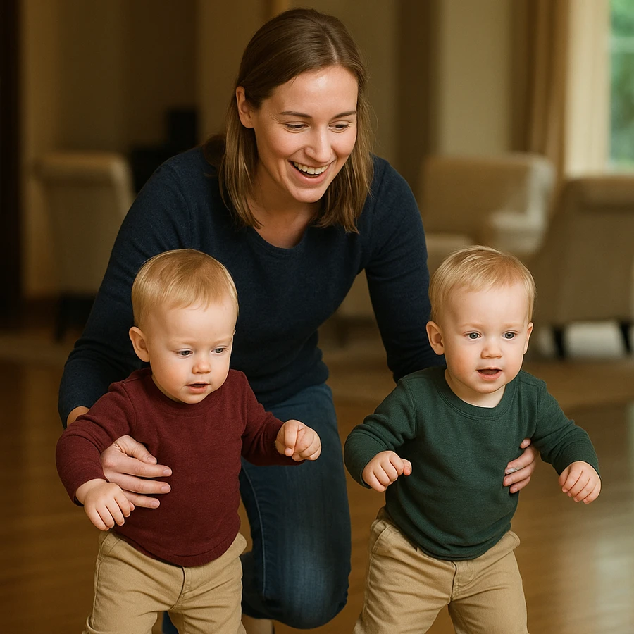 Cada día, ella convertía la terapia en un juego. Colocaba juguetes a cierta distancia para que los gemelos intentaran alcanzarlos, los motivaba con risas y abrazos, y transformaba el esfuerzo físico en una experiencia divertida. Poco a poco, los músculos de los pequeños comenzaron a responder.