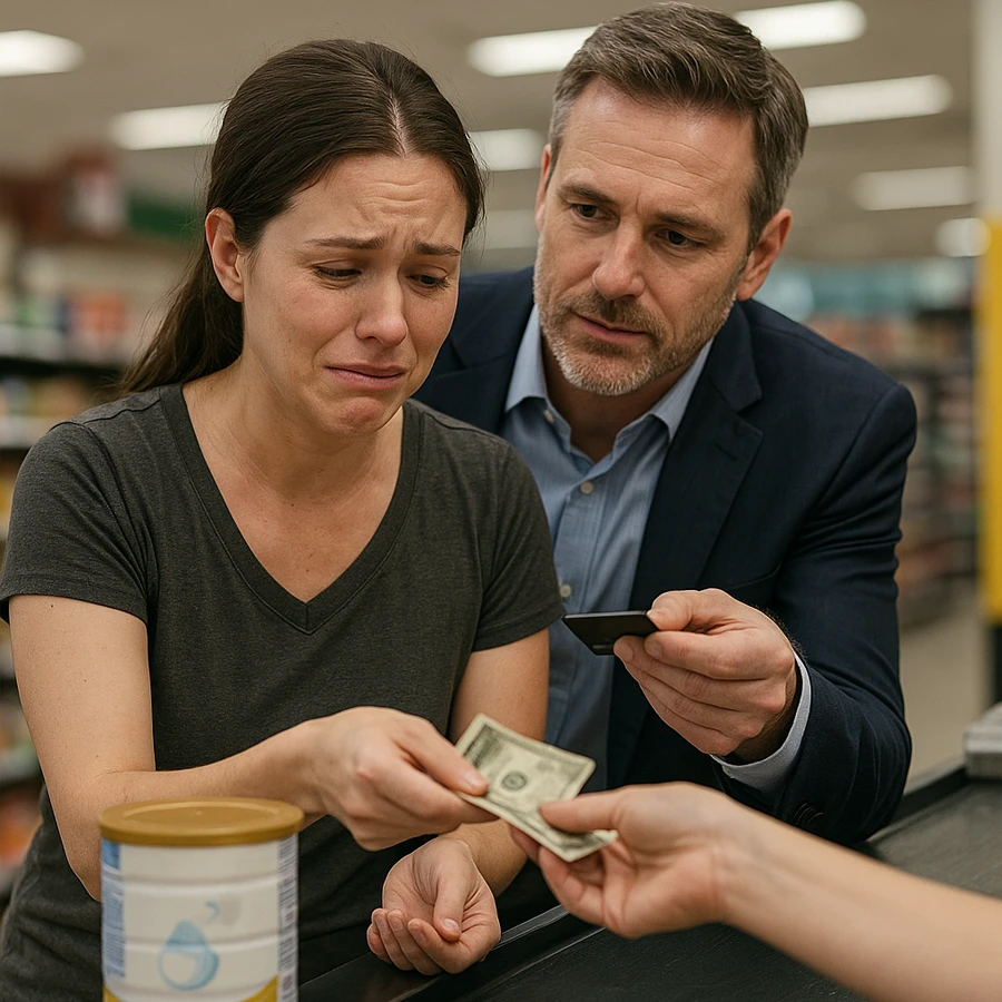 Lo que nadie sabía era que justo detrás de ella en la fila estaba un hombre con traje impecable y un reloj que valía más que la caja entera de la tienda. Se trataba de un CEO de una importante compañía, alguien acostumbrado a cerrar acuerdos millonarios y rodearse de lujos. Sin embargo, esa mañana lo conmovió algo mucho más poderoso que cualquier contrato: la vulnerabilidad de una madre que luchaba por alimentar a su hijo.