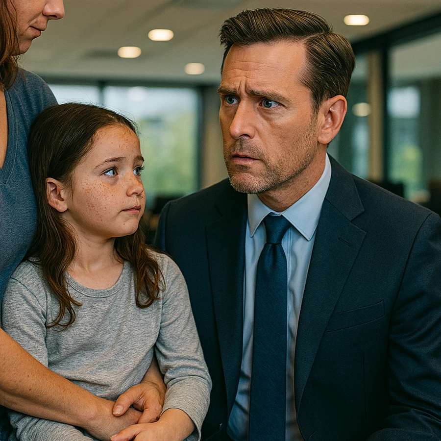 Por un instante, el tiempo pareció detenerse. Sus empleados observaron con sorpresa cómo el implacable CEO, normalmente frío e inaccesible, quedaba petrificado frente a una niña.