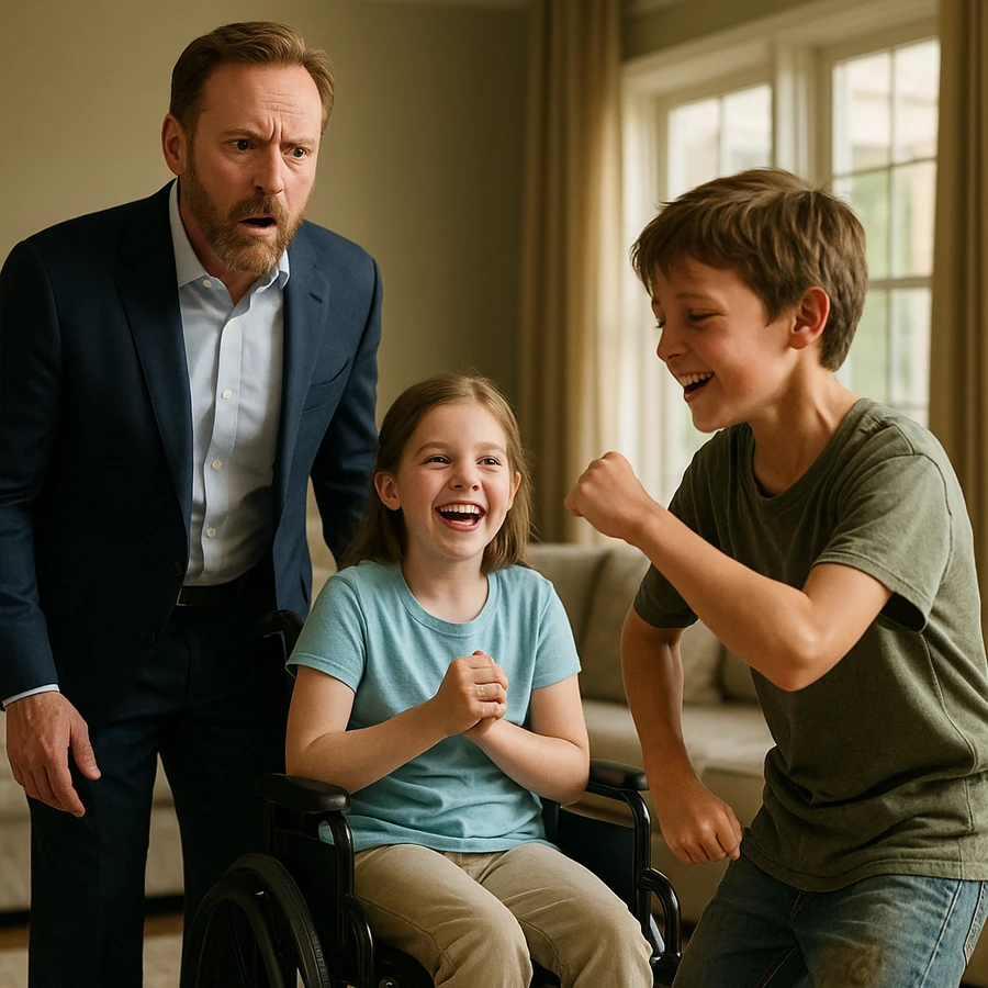 Los días siguientes, Lucas regresó a escondidas. Cada tarde, Sofía lo esperaba ansiosa. Él bailaba, inventaba juegos y le contaba historias de la calle. Poco a poco, la niña recuperó la chispa en sus ojos. Incluso comenzó a mover ligeramente los dedos de las manos, algo que los médicos no habían logrado estimular en meses.