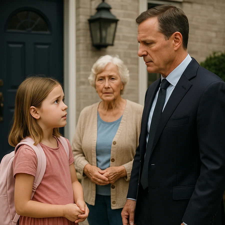 En una elegante urbanización de casas modernas y silenciosas, vivía un hombre que parecía tenerlo todo: dinero, éxito y poder. Era el tipo de vecino al que todos veían llegar en un auto de lujo, siempre impecable en su traje, pero que rara vez cruzaba una palabra con alguien. Sin embargo, un día cualquiera, su vida cambió para siempre cuando una niña inocente llamó a su puerta con una pregunta desconcertante: