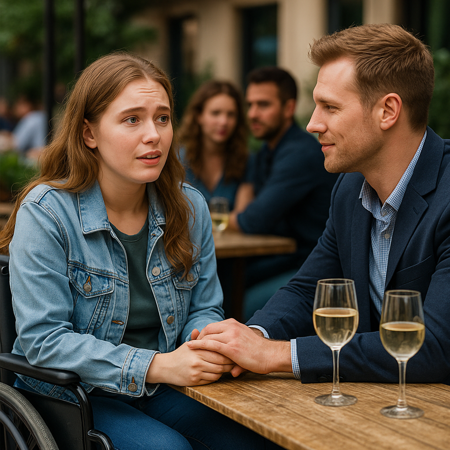 Entre las mesas, una mujer joven en silla de ruedas esperaba, nerviosa, mirando el reloj. Había pasado años sin aceptar una cita. No porque no quisiera, sino porque pensaba que nadie podría verla más allá de su silla.