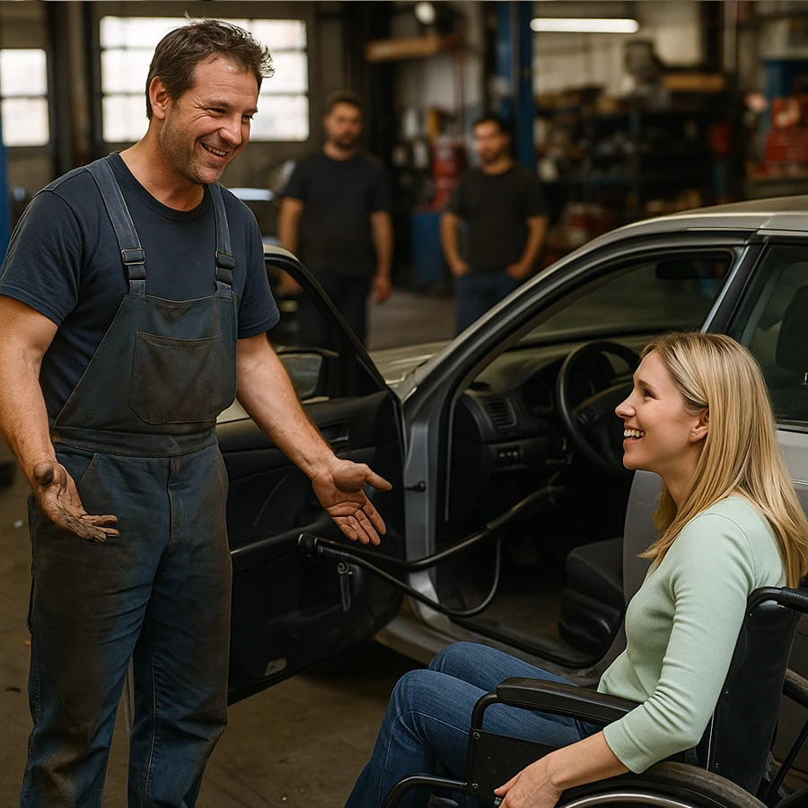 Mecánico humilde creó un auto adaptado… y halló una millonaria