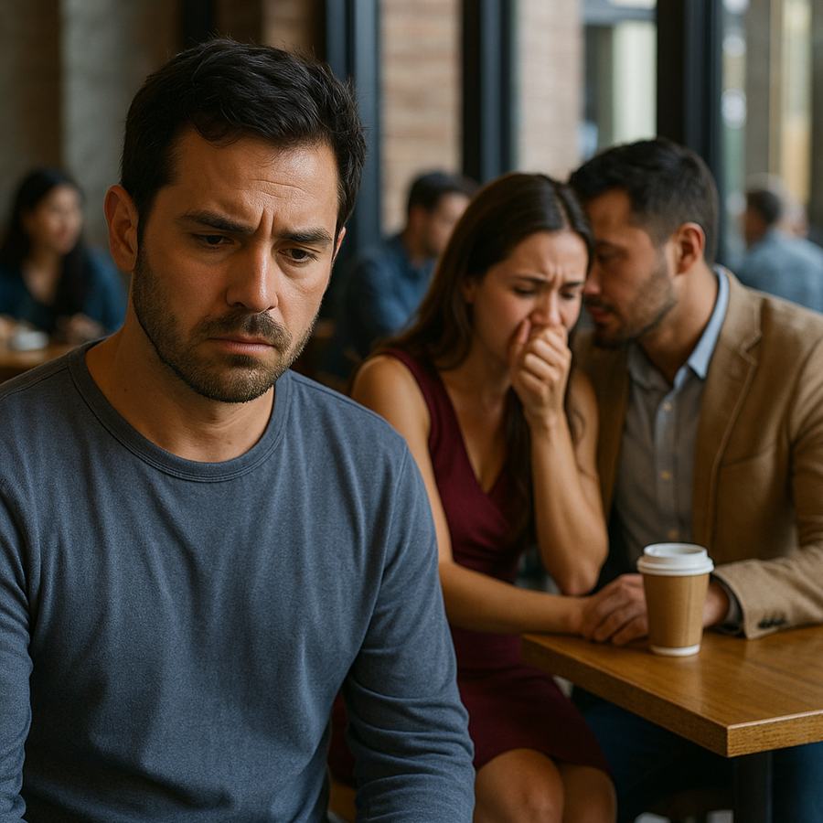 Marcos Ortega, un hombre de treinta y siete años de mirada serena, había llegado a la cafetería antes de lo habitual. Se sentó frente a la ventana, donde cada detalle de su rostro revelaba una mezcla de tristeza, confusión y resignación. Su taza de café permanecía intacta frente a él, mientras mantenía la mirada perdida en un punto invisible del exterior. Parecía luchar internamente, como si estuviera intentando reconstruir un rompecabezas que llevaba demasiado tiempo desordenado.