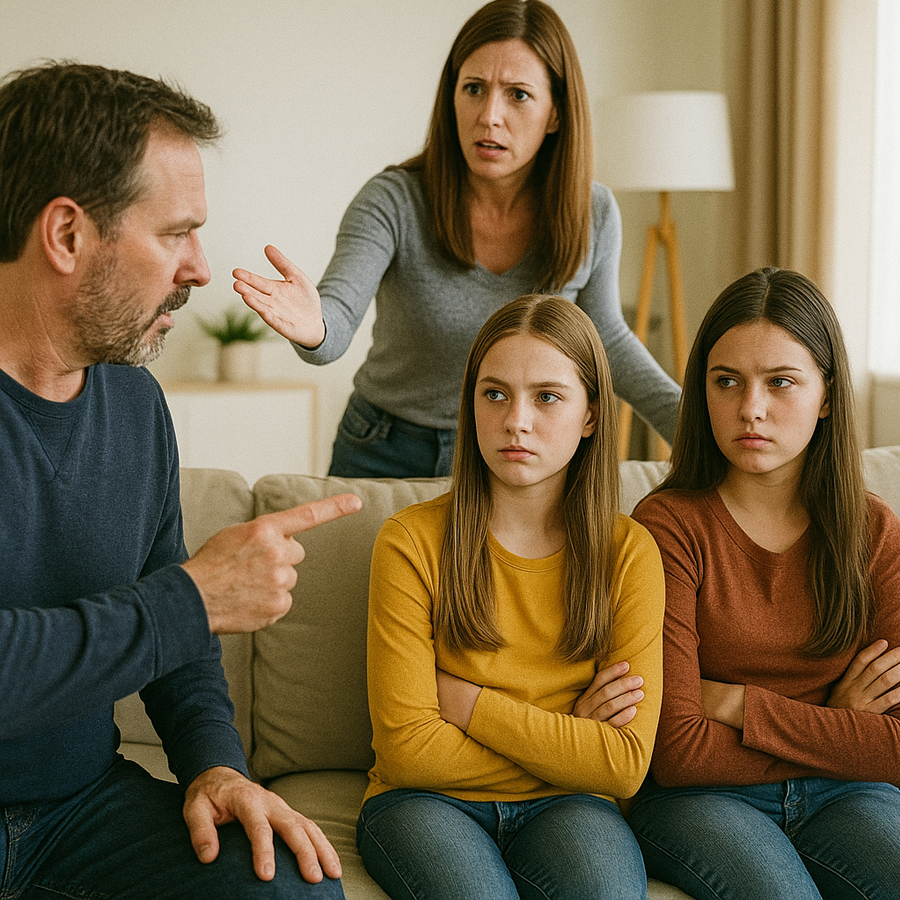 Las dos adolescentes, Camila y Sofía, hijas de Laura de su primer matrimonio, nos observaban desde el sofá. Una sonreía con burla; la otra fingía pena. Sabían que su madre siempre las defendería, sin importar qué hicieran.