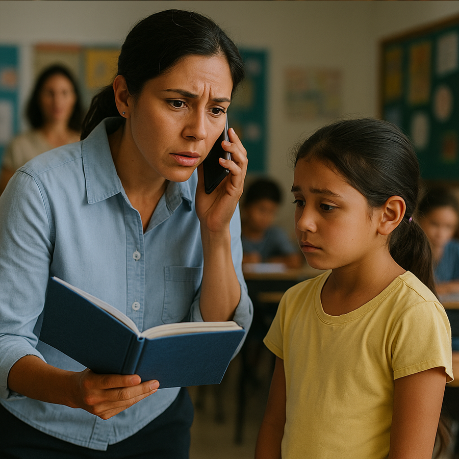 La profesora se quedó inmóvil. Miró a la niña, que solo bajó la cabeza. El corazón de María se aceleró.