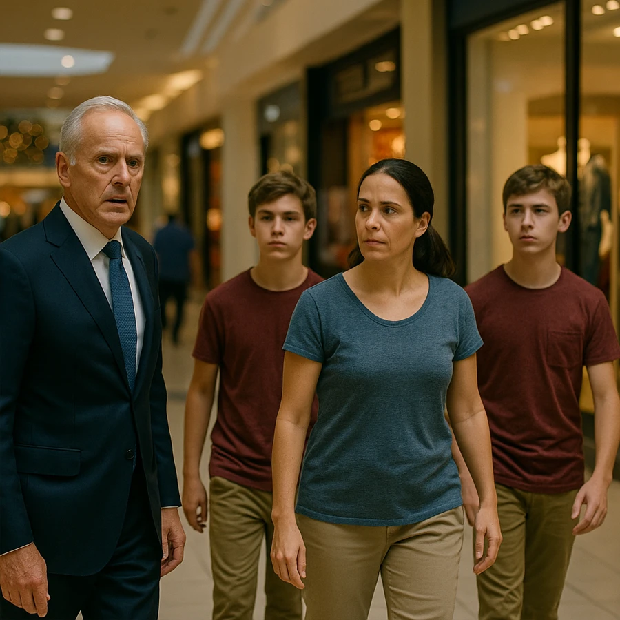 Quince años después, Alejandro paseaba por un centro comercial de lujo. Había ido a cerrar un trato en una de las cafeterías del lugar. Caminaba con seguridad, rodeado de asistentes, cuando algo llamó su atención: una mujer con el cabello recogido, vestida con sencillez, caminaba tomada de la mano de dos adolescentes idénticos.