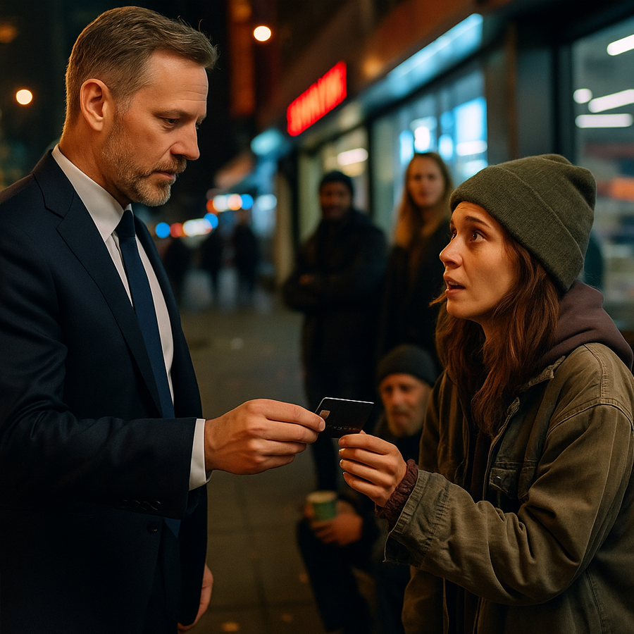 “Millonario entregó una tarjeta negra a una indigente… lo que hizo impactó a todos”