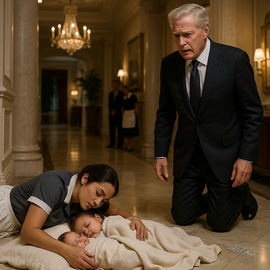 Millonario halla a su sirvienta dormida en el suelo con los gemelos