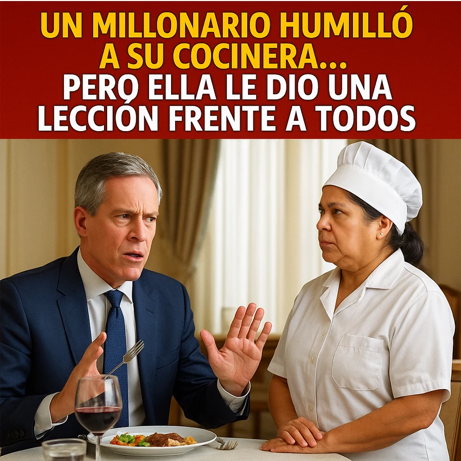 Lo que él no sabía era que varios de los presentes habían grabado la escena con sus teléfonos móviles. Al día siguiente, el video se viralizó en redes sociales bajo el título: “Millonario humilla a cocinera… y recibe una lección frente a todos”. En cuestión de horas, millones de personas comentaban el episodio, elogiando el valor de Clara y criticando la arrogancia de Julián.