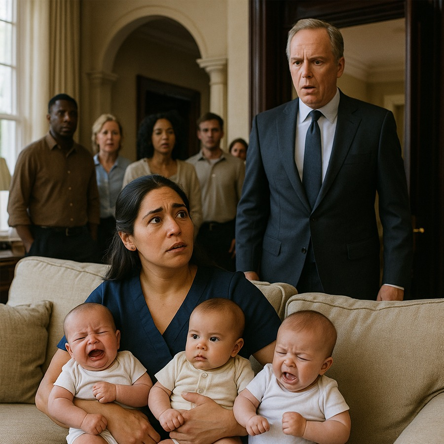 El millonario Alejandro Del Valle, conocido por su frialdad y control absoluto, bajó las escaleras y vio algo que lo dejó sin habla: su empleada doméstica, María Gómez, estaba de pie en el vestíbulo… sosteniendo tres bebés en sus brazos.