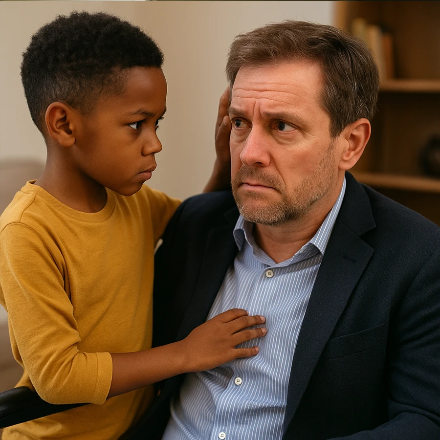 Con gestos sencillos, el niño comenzó a tocar sus piernas, a observar sus movimientos y a hacerle preguntas. Alejandro lo miraba con asombro y hasta con algo de incomodidad.