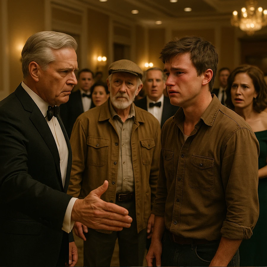Lo que el millonario no sabía era que su desprecio estaba a punto de volverse contra él. Entre los invitados se encontraba un anciano campesino, de rostro curtido por el sol y las manos marcadas por años de trabajo en la tierra. Era el abuelo del joven, quien había guardado silencio durante años para proteger a su hija —la madre del muchacho— y evitar un escándalo.