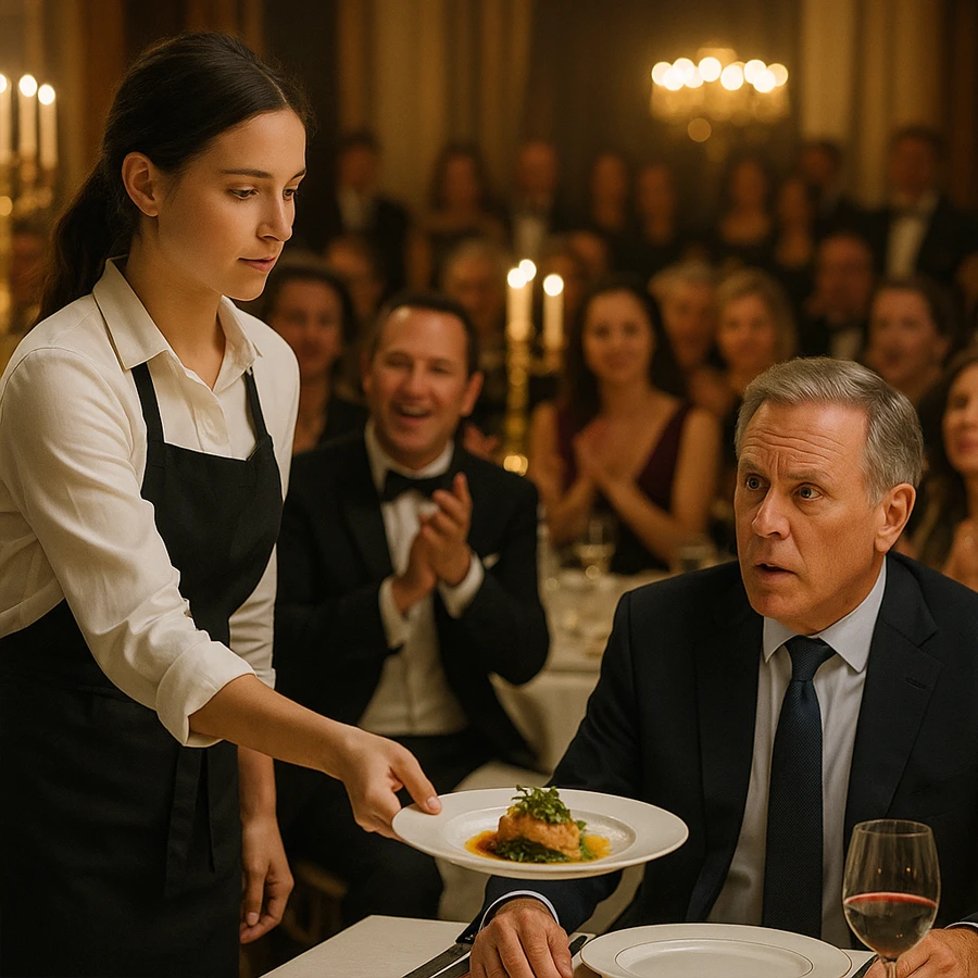 El anfitrión, un hombre arrogante y acostumbrado a ridiculizar a quienes consideraba inferiores, se fijó en una de sus empleadas. Ella servía discretamente los platos, intentando no llamar la atención. Pero su mirada humilde despertó en él un deseo de humillarla frente a todos.
