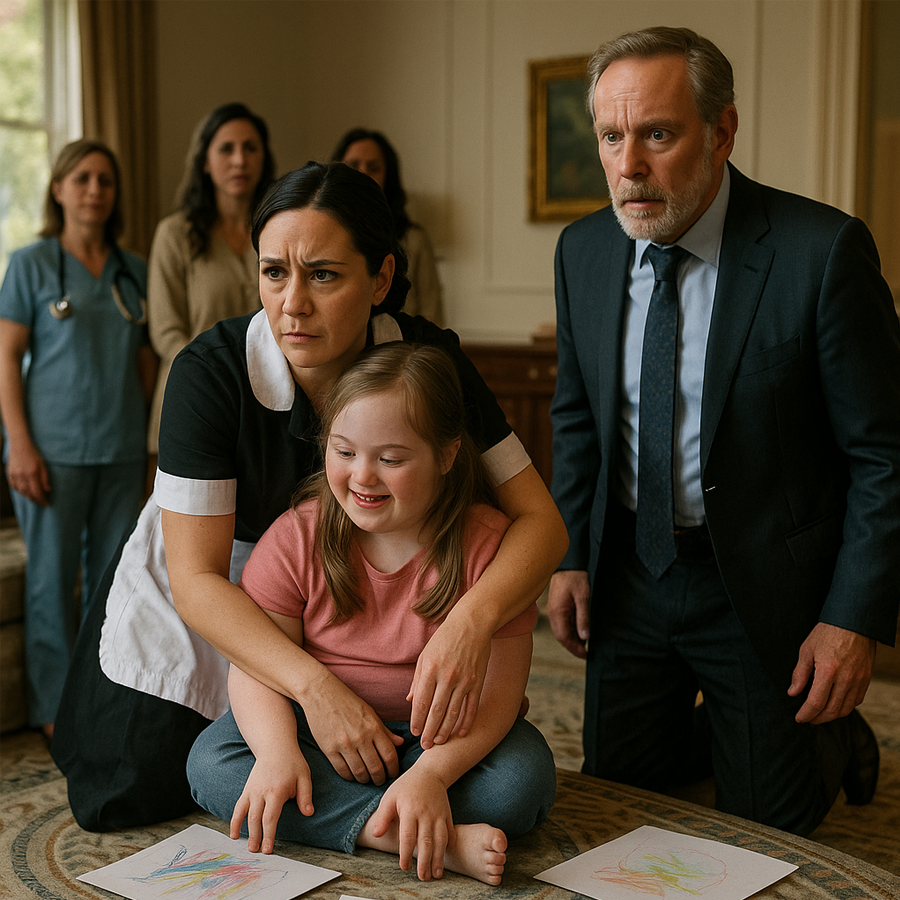 Una tarde, mientras Alejandro regresaba de una reunión adelantada, escuchó voces y risas en el ala este de la mansión. Intrigado, decidió seguir el sonido. Lo que vio al abrir la puerta fue algo que jamás olvidaría: su hija, entre carcajadas, estaba en el suelo dibujando con crayones junto a Carmen, quien la abrazaba con ternura y la defendía de un grupo de niñeras que querían interrumpir el momento para continuar con la rutina médica.
