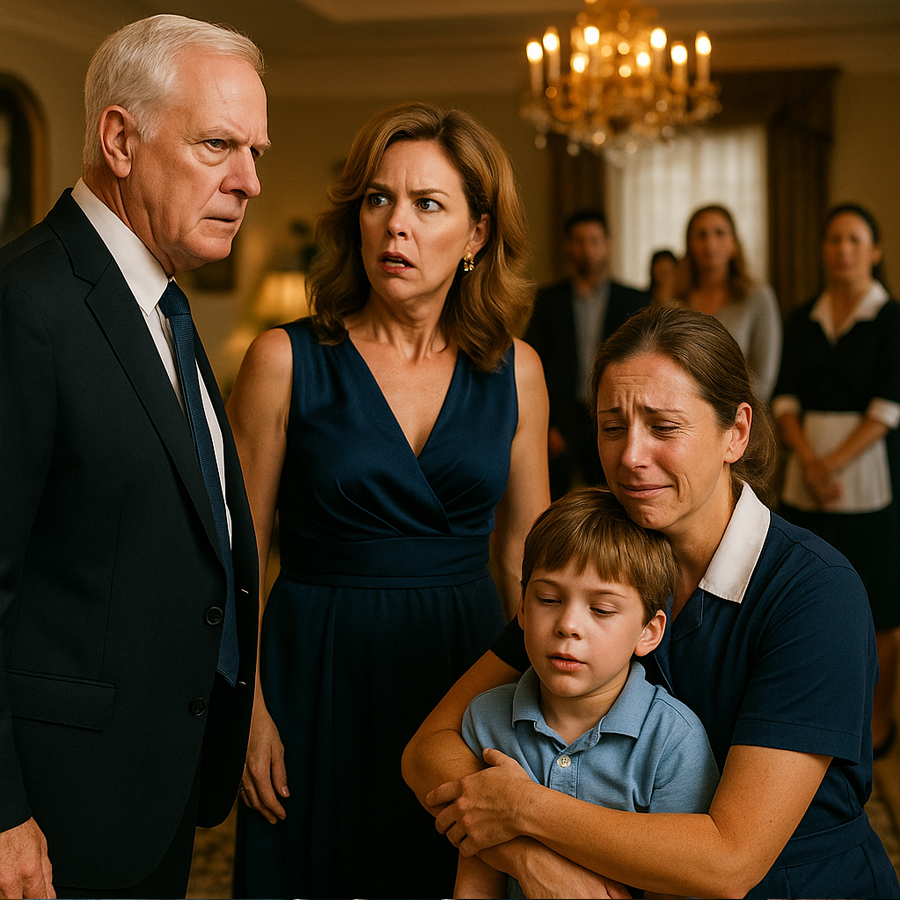 La esposa se giró, sorprendida. La empleada bajó la mirada, temiendo ser despedida. El niño, en cambio, extendió los brazos hacia su padre, buscando protección.