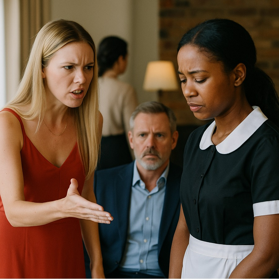 El lujo y la arrogancia parecían dominar la velada en la mansión de un joven millonario. Invitados de la élite disfrutaban de una cena elegante, rodeados de copas de cristal y platos caros. Todo parecía perfecto, hasta que una escena inesperada sacudió la calma: la novia del anfitrión fue sorprendida humillando a la empleada doméstica frente a todos. Lo que vino después dejó al salón entero en estado de shock.