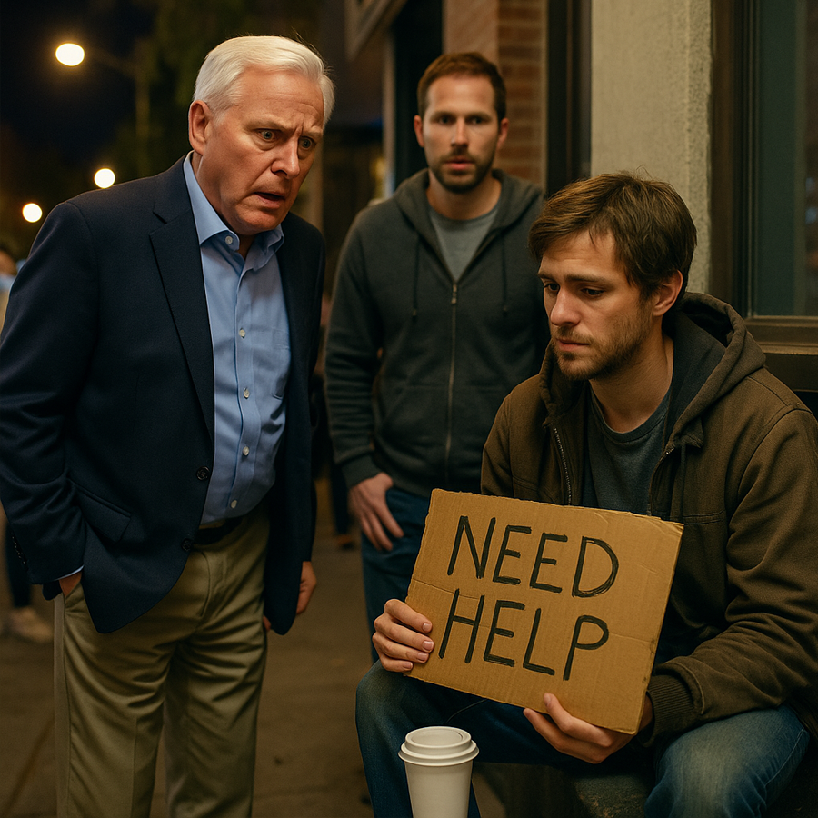 El silencio fue sepulcral. Algunas personas en la calle se detuvieron a mirar, intrigadas. Un par de empleados de una tienda cercana asomaron la cabeza. El contraste era brutal: un millonario de traje fino frente a un joven mendigando en la calle.