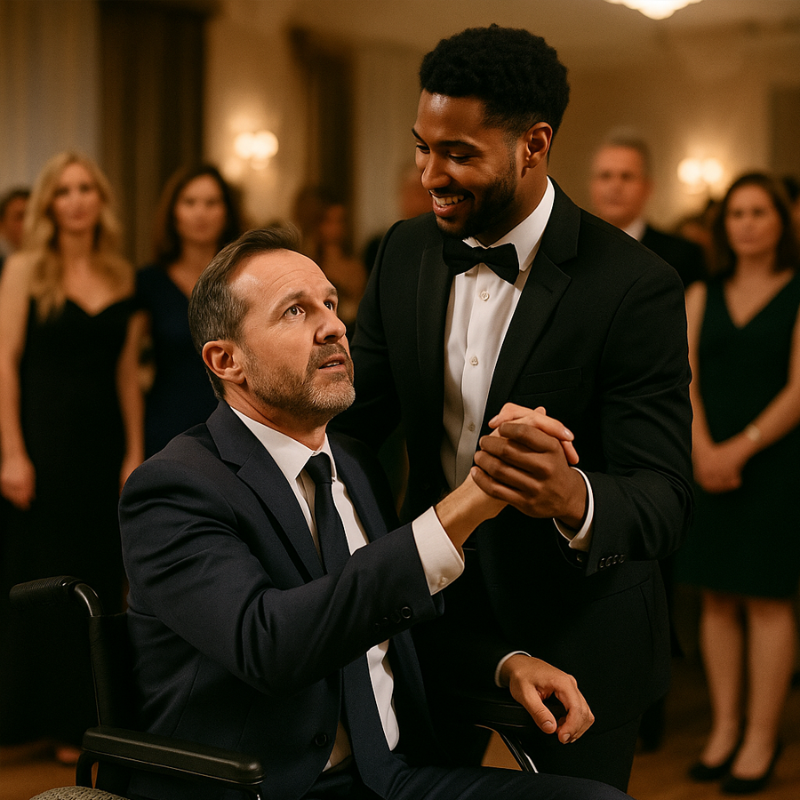 El DJ, sin saber qué hacer, reanudó la música. Marcus colocó una mano en el hombro de William y comenzó a moverse al ritmo. Primero lento, torpe, con pasos cortos. Pero poco a poco, la incomodidad dio paso a algo más grande: una conexión humana.