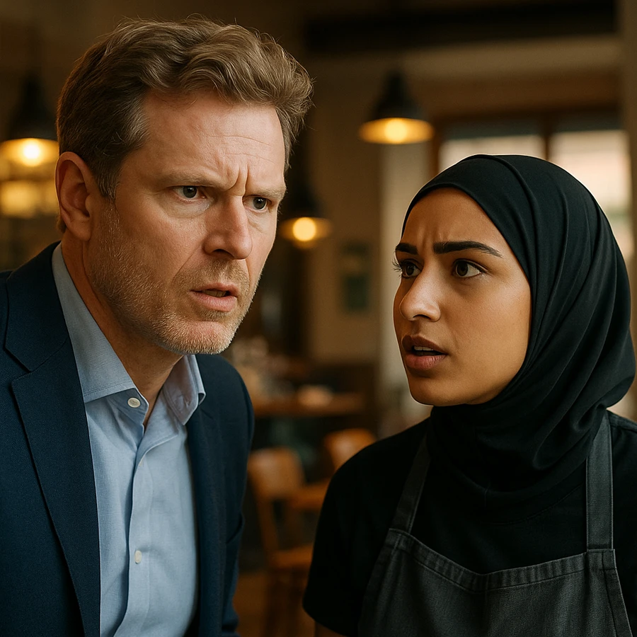 La joven mesera, llamada Amina, se detuvo en seco. Dio media vuelta, se acercó con calma y, para sorpresa de todos, le respondió en perfecto árabe: