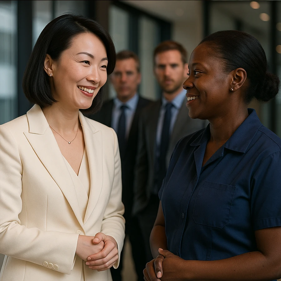 La noticia corrió como pólvora dentro de la empresa. “La limpiadora entendió lo que nadie más pudo”, comentaron los empleados. Grace fue llamada de inmediato a la oficina central y, frente a todos, la heredera la señaló y dijo en inglés entrecortado: