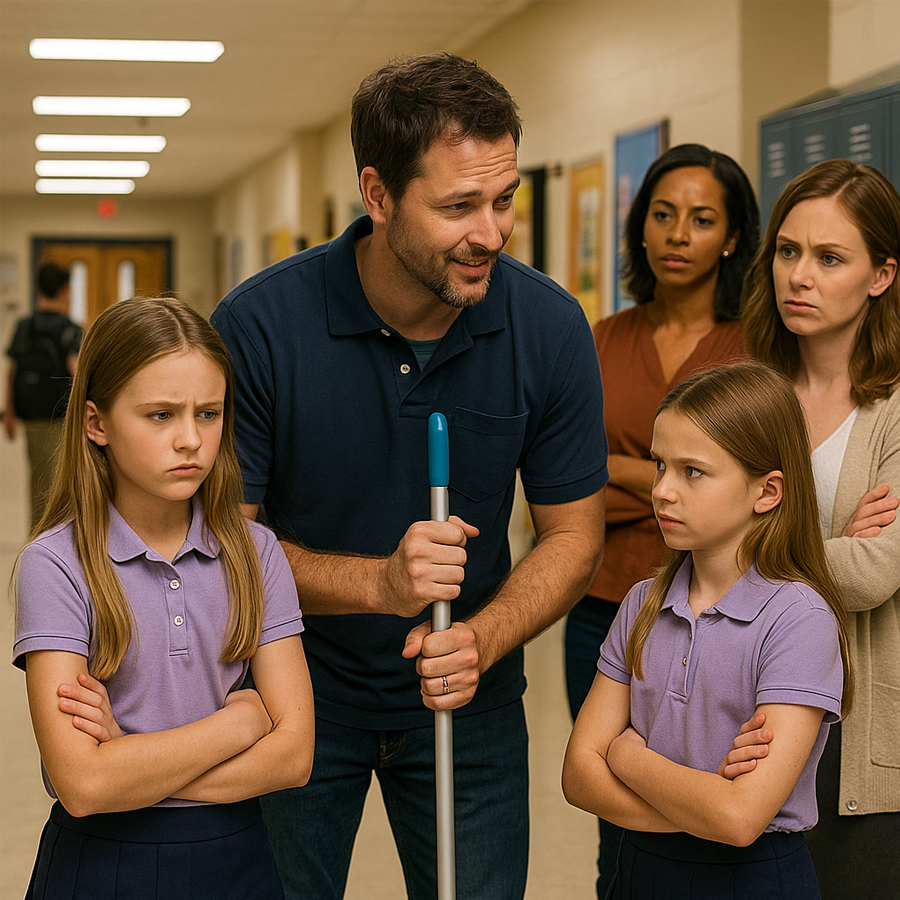 Esa noche, las gemelas llegaron a casa alteradas. “Un simple conserje nos dio una lección”, dijo Emma entre risas. Pero algo en su voz sonaba distinto. Por primera vez, alguien había puesto límites sin miedo.