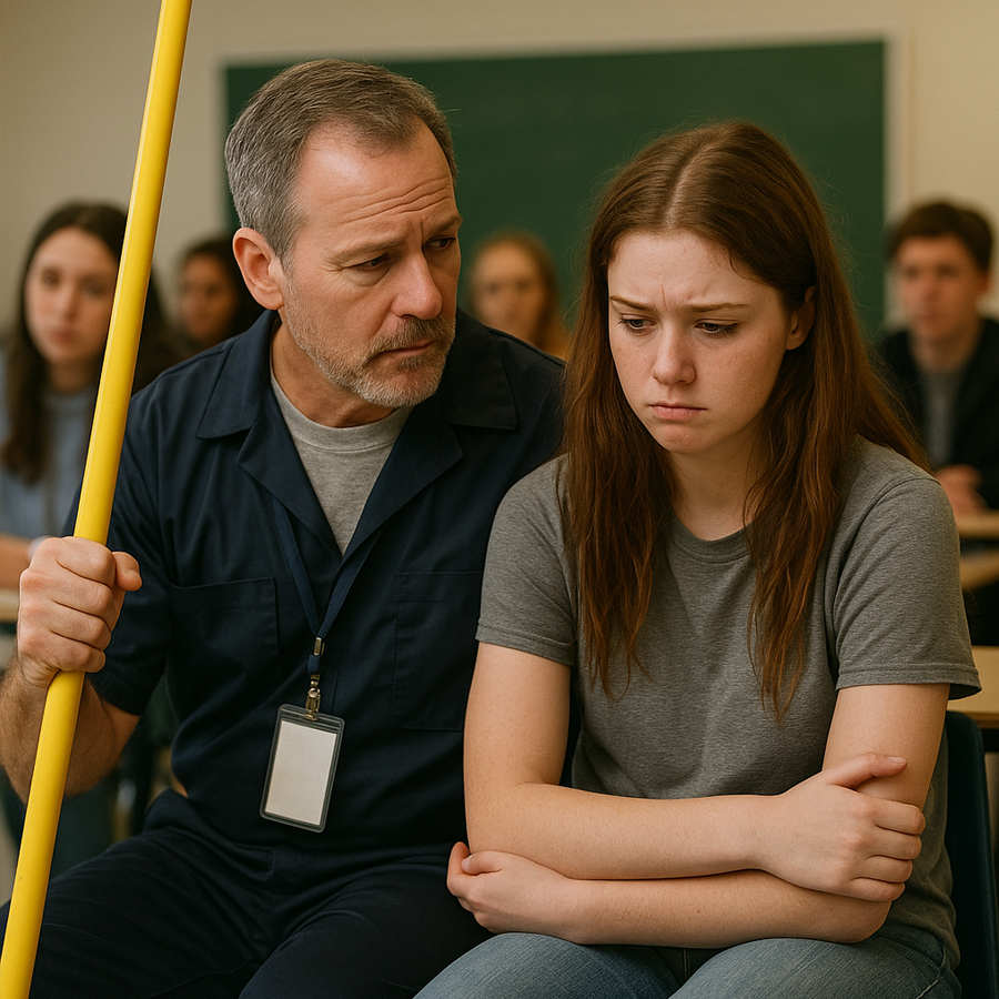 Esa tarde, mientras barrían juntos el pasillo, un grupo de alumnos pasó riendo. Uno de ellos, compañero de Amelia, soltó con burla: