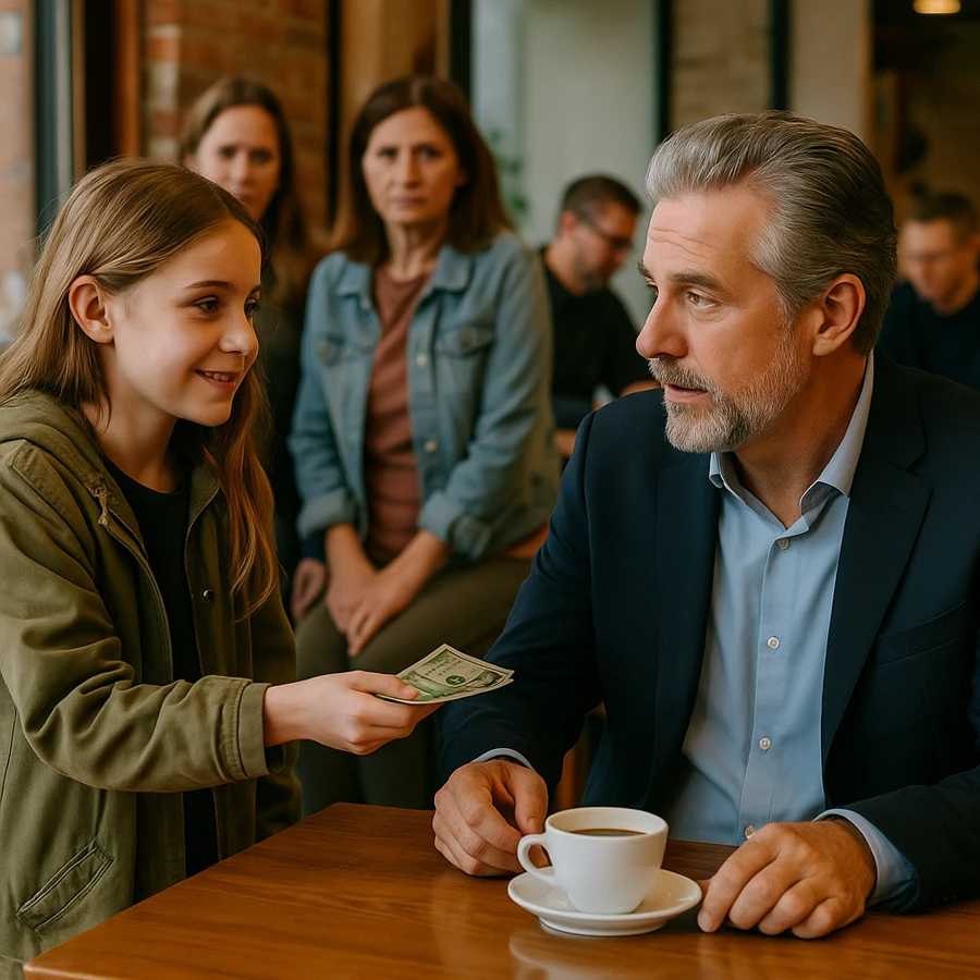 Era una tarde tranquila en el centro de la ciudad. La cafetería, con aroma a pan recién hecho y tazas de cerámica tintineando, recibía a clientes habituales. Entre ellos estaba Sofía, una niña de 12 años, que ayudaba a su madre trabajando algunas horas para ganar propinas.