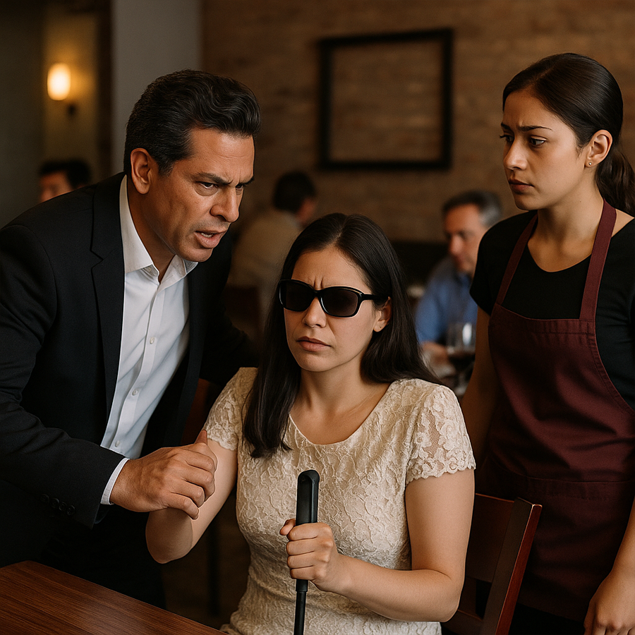 El restaurante “El Mirador de Castaño” era uno de los lugares más elegantes de la ciudad. Sus manteles blancos, copas brillantes y ventanas gigantescas que dejaban entrar la luz del atardecer lo convertían en un sitio perfecto para celebraciones, compromisos y reuniones de negocios. Sin embargo, esa tarde, el restaurante sería testigo de una escena tan inesperada como impactante, protagonizada por un millonario, su esposa ciega y una mesera que cambiaría el curso de la historia.