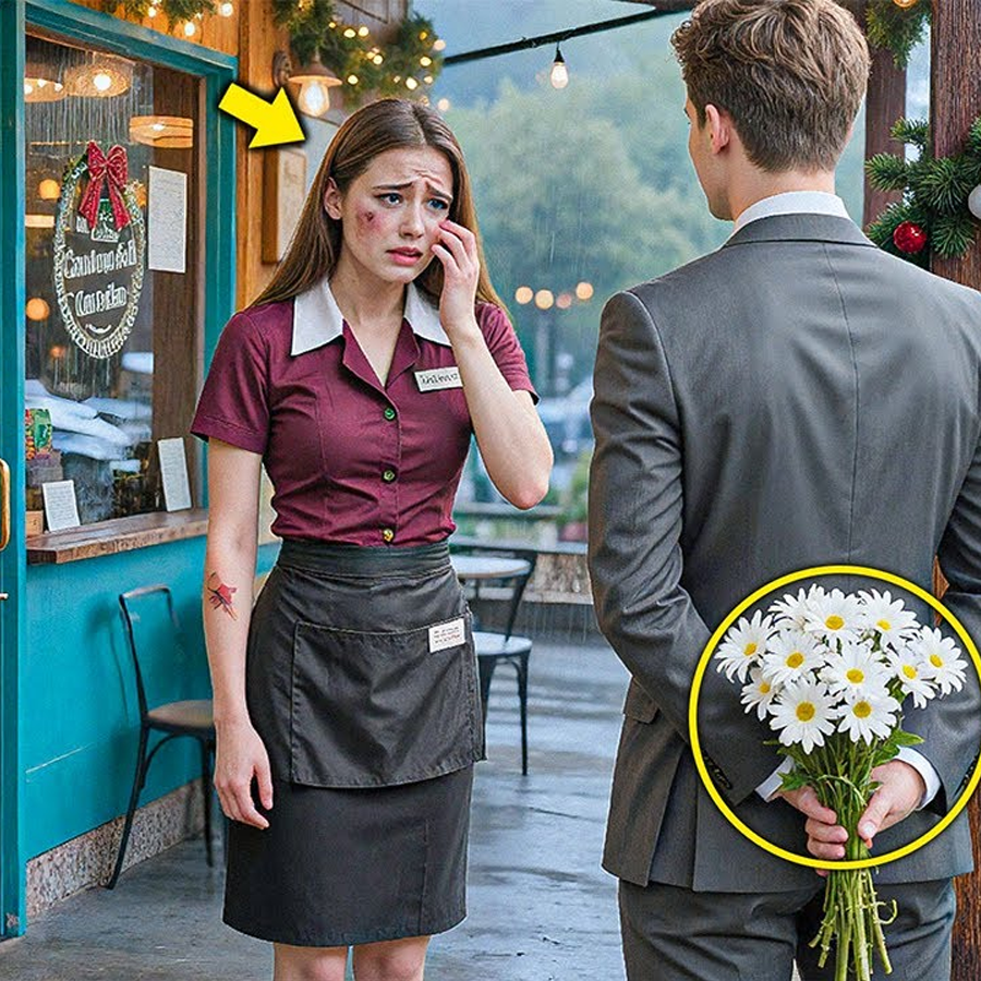 “‘NO ME MIRES ASÍ’, le dijo la camarera con el labio hinchado y la manga ocultando un moretón, cuando el CEO que siempre almorzaba en silencio la vio temblar al tomarle la orden; él salió sin decir nada, volvió con un ramo de flores y unas palabras que nadie esperaba, y ella rompió en llanto frente a todo el local”