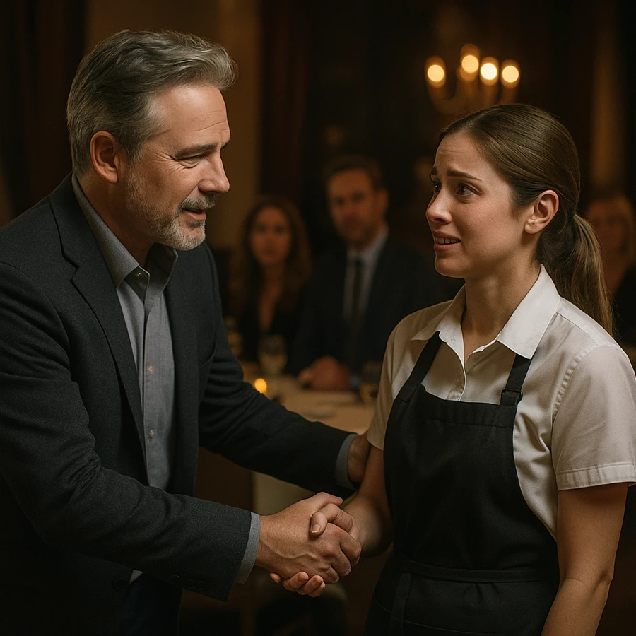 La historia comenzó en un restaurante elegante, de esos donde los manteles son blancos como la nieve y el vino cuesta más que un salario completo. Ella, una joven camarera de origen humilde, trabajaba largas jornadas para poder mantener a su madre enferma. No buscaba reconocimiento ni lujos; solo quería hacer bien su trabajo y sobrevivir un día más.