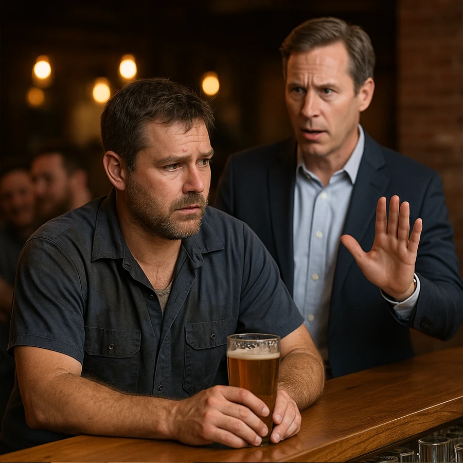 Carlos, un hombre de unos treinta y pocos años, había entrado al bar para relajarse después de una jornada agotadora en el taller mecánico. Sus manos, marcadas por la grasa y el esfuerzo, contrastaban con las camisas impecables y relojes caros de otros clientes que bebían en la barra. Él no buscaba atención, solo un momento de tranquilidad.