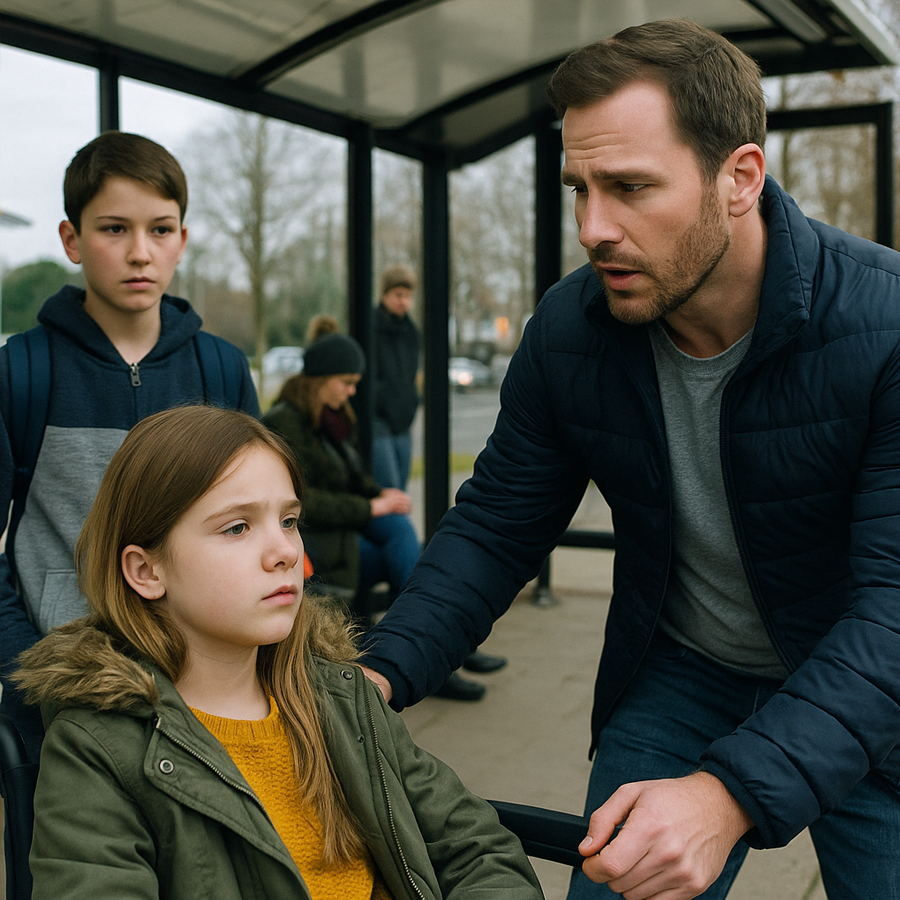 Pero en una parada de autobús, una niña desconocida en silla de ruedas lo miró a los ojos… y su vida dio un giro que nadie esperaba.