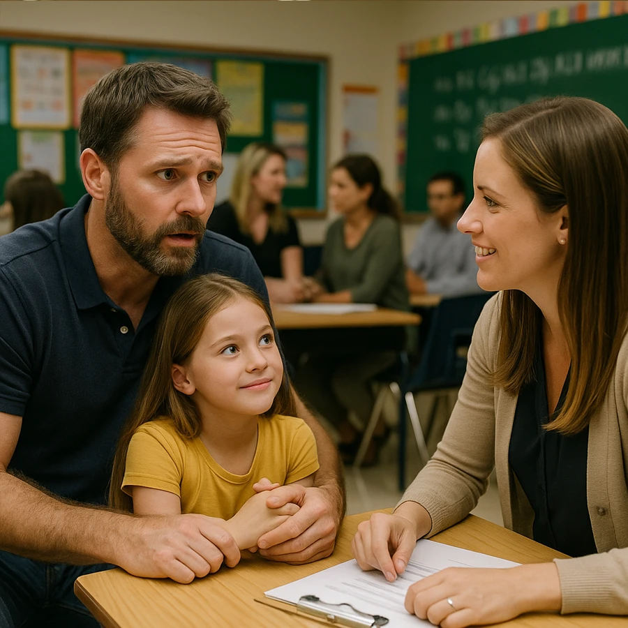 La mayoría de las reuniones de padres y maestros transcurren entre informes de notas, comentarios sobre disciplina y promesas de mejora. Pero aquella noche, en una escuela pública de un pequeño barrio estadounidense, lo que sucedió conmovió a todos los presentes.