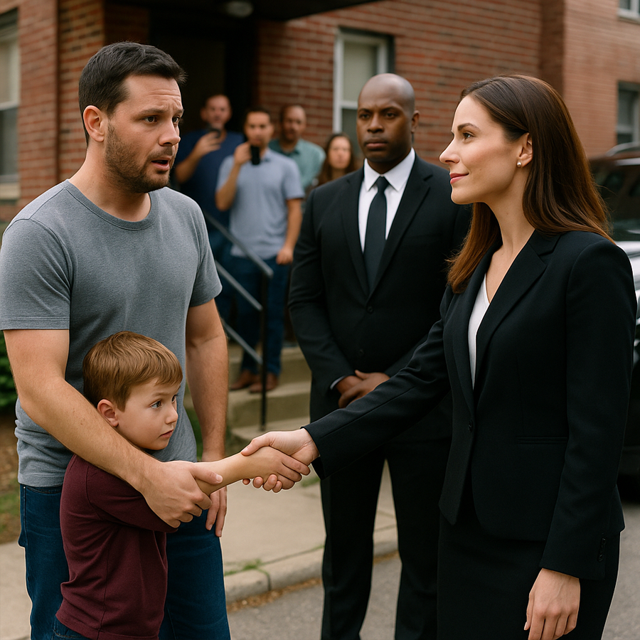 Los vecinos comenzaron a murmurar, creyendo que se trataba de un operativo policial. Pero en medio de ellos apareció la misma mujer a la que había rescatado, ahora impecablemente vestida con un traje elegante, el cabello recogido y rodeada por su equipo de seguridad.
