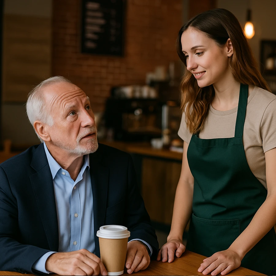 Laura, una estudiante universitaria que trabajaba medio tiempo en la cafetería, estaba acostumbrada a ver todo tipo de clientes. Esa mañana, entró un hombre mayor, vestido con elegancia discreta, que parecía cansado y distraído. Al acercarse a la caja, buscó en sus bolsillos y descubrió que había olvidado su billetera.