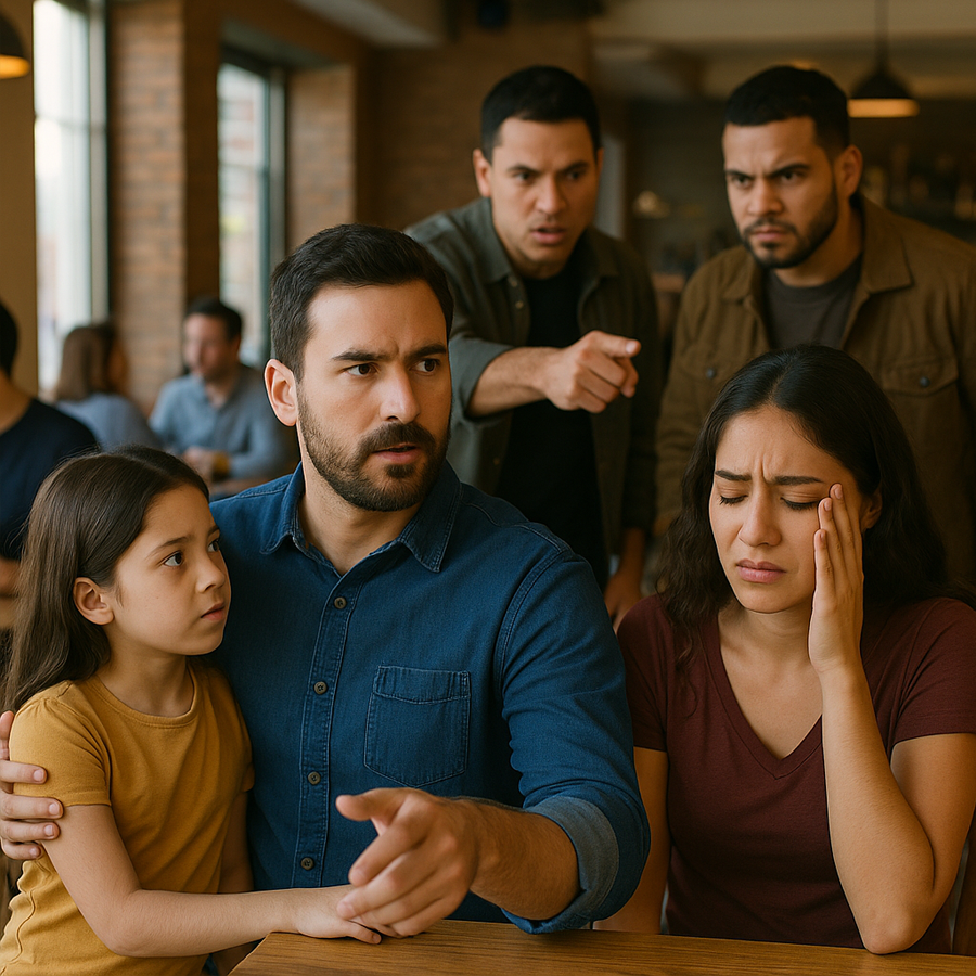 —Solo soy alguien que enseña a su hijo a hacer lo correcto.El silencio fue absoluto. El segundo hombre, algo más sobrio, intentó calmar a su compañero. La tensión duró apenas unos segundos, pero pareció una eternidad. Los empleados del restaurante se acercaron con cautela, y varios comensales comenzaron a grabar discretamente.